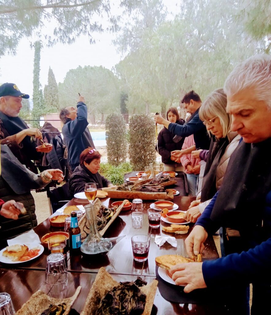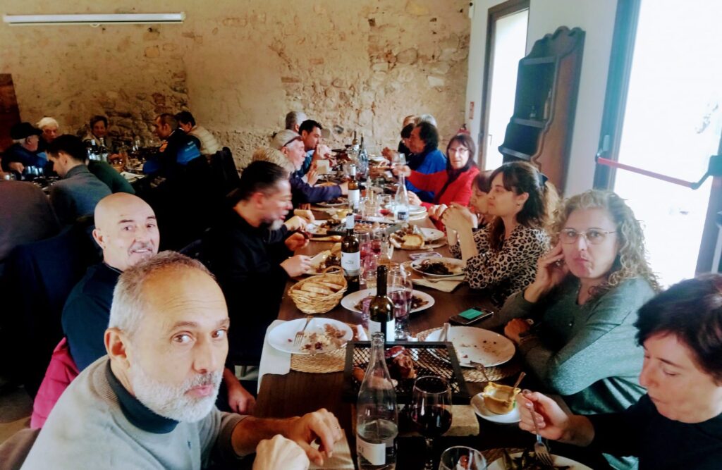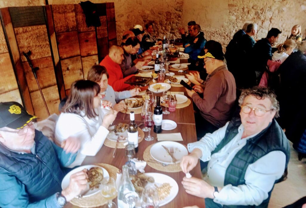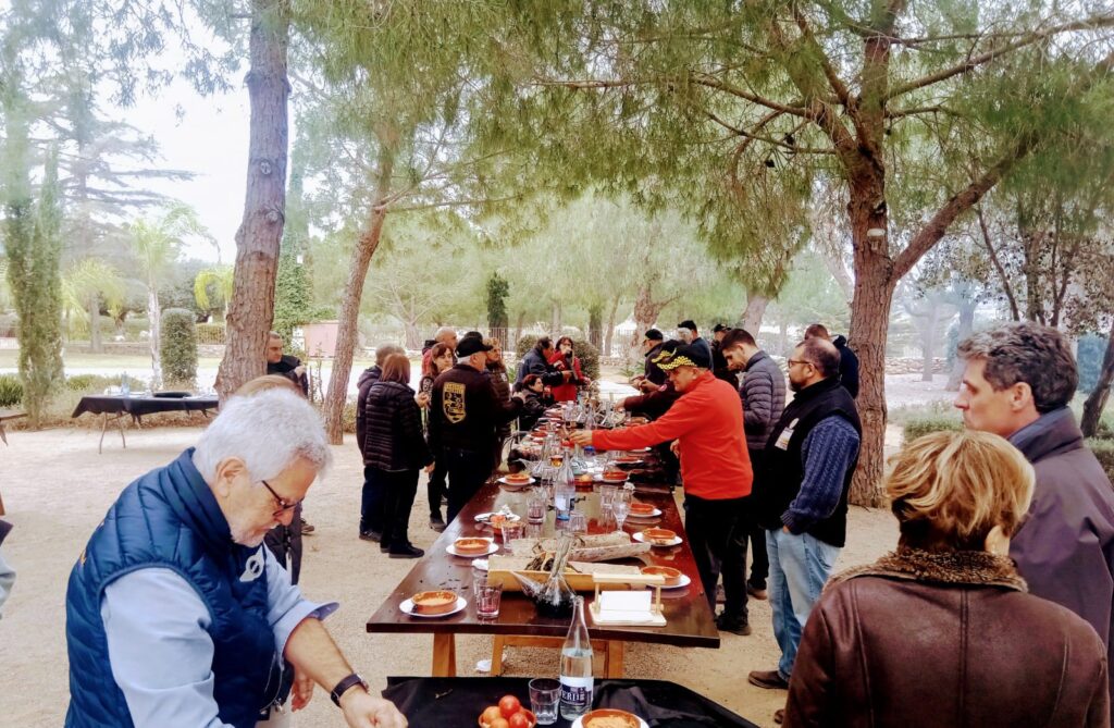 Seguidament, hem anat al Bell Mas del Milà. En arribar al Mas, s’ha fet entrega als assistents d’una gorra de Clàssics Morell, així com dues enganxines de club. Després d’un aperitiu en la zona del Jardí, hem pogut gaudir d’un dia de calçotada amb uns plats molt bons i amb un tracte excepcional.