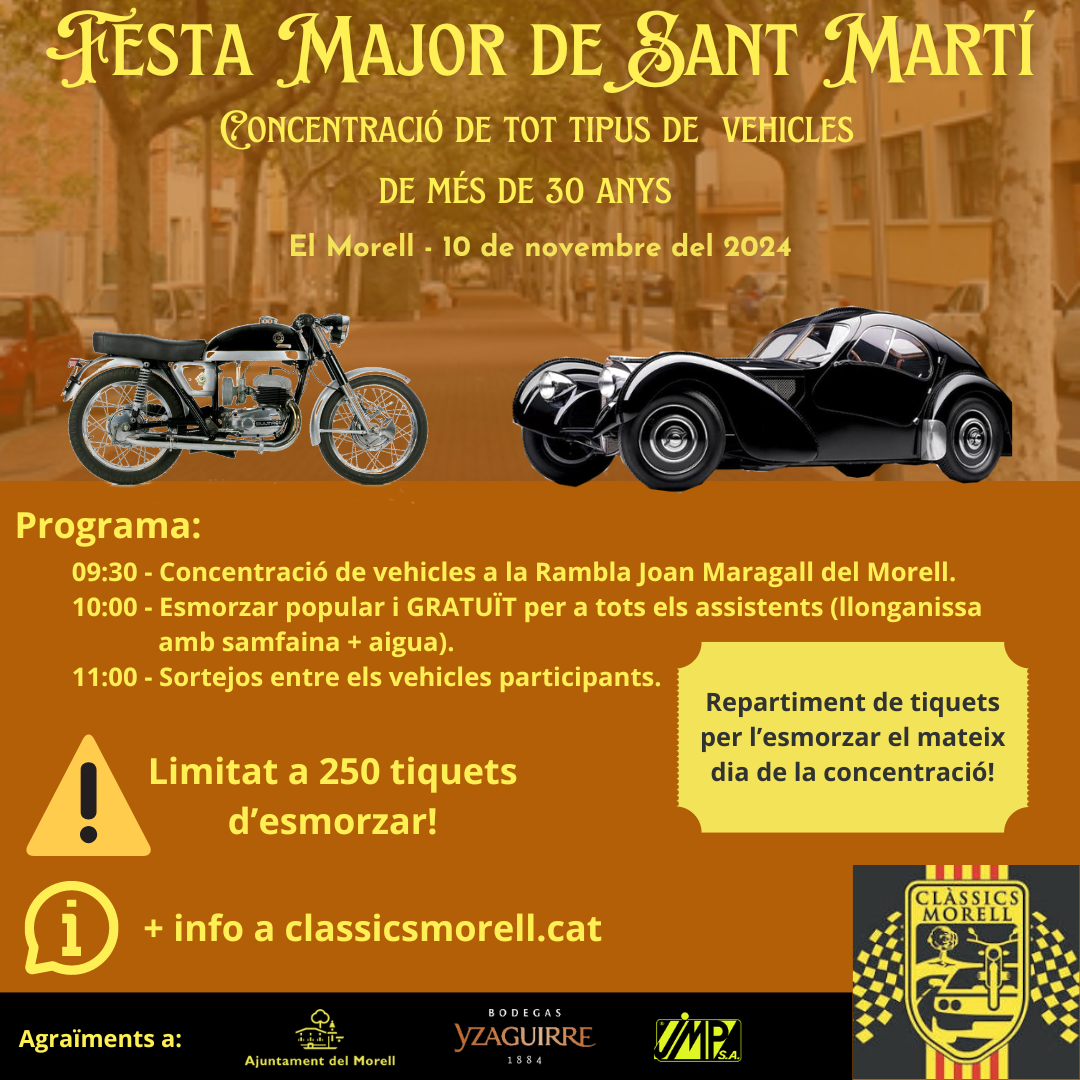 Primera vermutada + fideuà de Clàssics Morell, segon mercat de compra venta i concentració de...