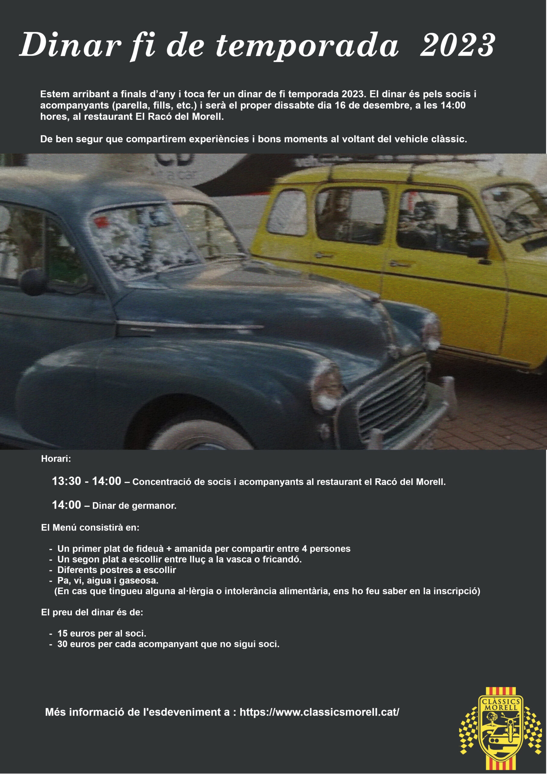 Dinar de germanor de Clàssics Morell 2023 Estem arribant a finals d’any i toca fer...